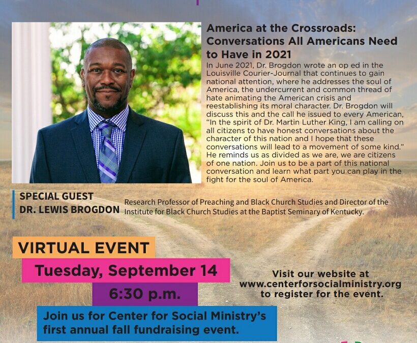 After his op ed in July, “Is America in danger of losing its soul? The conversation everyone needs to have in 2021,” Dr. Lewis Brogdon continues to gain exposure as he is invited to be a guest speaker at events all over the country. Most recently, Dr. Brogdon will be the featured guest at Center for Social Ministry’s Raise for Change Annual Fundraiser on Tuesday, September 14 at 6:30 PM. Visit centerforsocialministry.org to register for this virtual event.